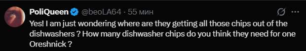 Да- да! Мне просто интересно, где они достают все эти чипы из посудомоечных машин? Как вы думаете, сколько чипов нужно для одного орешника?