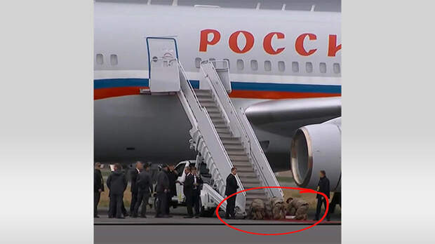А вот эти кадры вы точно никогда не видели: армия США кинулась к самолёту русского президента... подстилать ему красную дорожку.