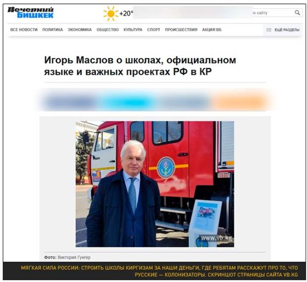 В марте 2023 года в интервью газете "Вечерний Бишкек" Игорь Маслов рассказывал, какие прекрасные учреждения среднего образования построят за деньги России в Киргизии. Спортивные площадки, компьютерные классы, современная методическая литература. В общем, всё то, чего не хватает тысячам школ в русской глубинке. Не помешало бы всё это благолепие школе №5 города Татарска (Новосибирская область), которая в сентябре текущего года рухнула от обветшания. Ей можно даже спортивную площадку не обновлять: просто сделать так, чтобы целое крыло здания не обваливалось.