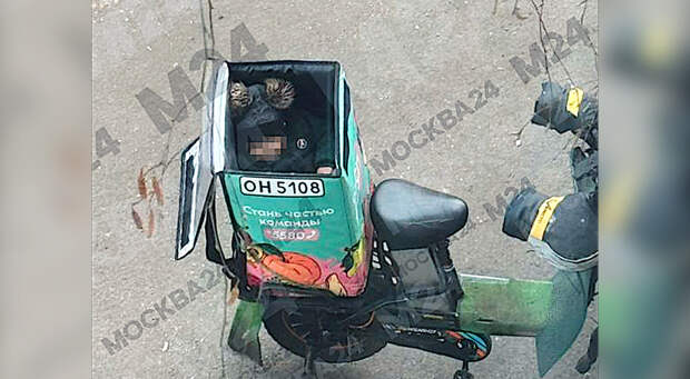 Всё случилось несколько дней назад в столичном районе Марьино. Средь бела дня местные жители увидели крайне необычную картину: приезжий курьер перевозил маленького ребёнка в сумке для доставки, закрепив её на багажнике велосипеда.