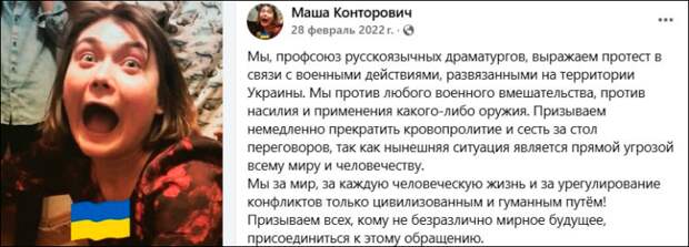 Впрочем, его обвиняют за другое "нетвойнистсткое" сообщение. Тогда, кстати, многие члены дружной "семьи" "Ельцин Центра", в том числе дочь первого президента России Татьяна Юмашева, сделали похожие публикации. Оно и понятно - спецоперация ознаменовала собой фундаментальный слом всей компрадорской системы, построенной при Борисе Николаевиче. А значит, СВО, рассуждали в этих кругах, ведётся и против них лично. За репост именно этой записи недавно тот же Верхне-Исетский районный суд осудил на 45 тысяч рублей и Людмилу Телень - первого заместителя исполнительного директора "ЕЦ".