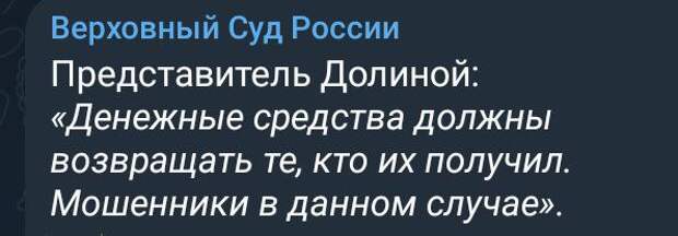 И тем не менее, знаете, это не то, чтобы злорадство, это чувство некоторого удовлетворения от того, что Верховный Суд поставил верховенство, пардон за тавтологию, закона над телефонным правом, которым явно воспользовались суды первой инстанции, создавшие совершенно абсурдный с точки зрения здравого смысла и простой человеческой совести прецедент, которым тут же не замедлили воспользоваться разные нечистоплотные бесстыжие в основном женщины.