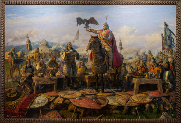 Добавляется, что в феврале 2025 года разгорелся скандал, когда общественность обратила внимание на убранство личного кабинета первого заместителя главы ДУМ РФ Дамира Мухетдинова, а именно: на две картины. Первая изображала пир монголов на телах русских князей после битвы на Калке, вторая - пленение казанскими татарами великого московского князя Василия II Тëмного под Суздалем.