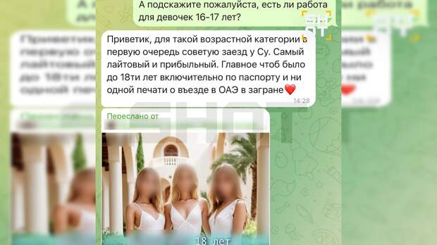 Издание, приведя скриншоты переписок, сообщило, что к несовершеннолетним девочкам обращаются некие «агенты модельной индустрии». Скаутами, по аналогии с футбольным термином, их, конечно, можно назвать, вот только предлагают они на самом деле не съёмки и дефиле, а банальный эскорт. Обещают «золотые горы» – до 4 млн рублей и «бонусы» в виде «цацок», одежды и других подарков от богачей. 78.ru, разбираясь в данном «бизнесе», узнавал примерный «прайс» - несколько миллионов это всё-таки заоблачные суммы, учитывая, что в Дубае девственность продать стоит несколько тысяч долларов. В приведённых SHOT переписках сумма за «услугу» называется в 10 тысяч (чуть больше 800 тысяч рублей).