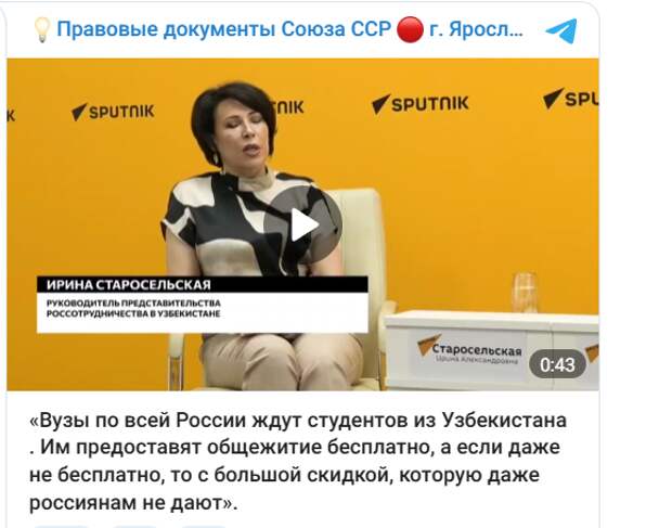 «Вузы по всей России ждут студентов из Узбекистана. Им предоставят общежитие бесплатно, а если даже не бесплатно, то с большой скидкой, которую даже россиянам не дают».