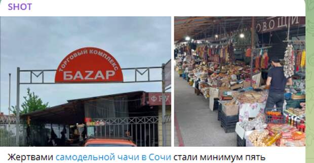 Сейчас информация о жертвах суррогатного алкоголя в Сочи проверяется. Предварительно все они покупали чачу на рынке "Баzар". Также он известен как "Казачий". Но это старое название. Теперь его называют "Абхазский рынок". Так как там в основном торгуют жители этой страны - от границы им недалеко.