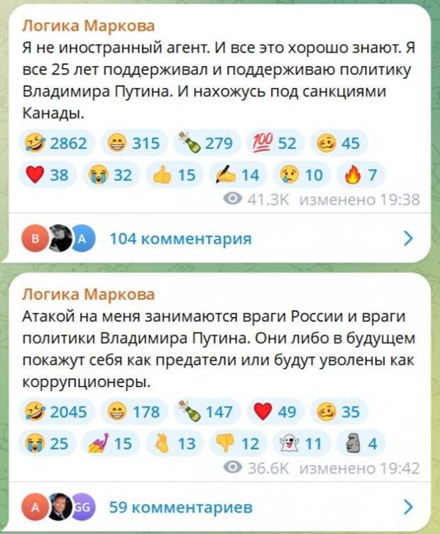 Политолог Сергей Марков*, бывший депутат Госдумы и доверенное лицо президента России, прокомментировал решение Минюста о включении его в реестр иностранных агентов. Он категорически отвергает этот статус, подчеркивая свою 25-летнюю последовательную поддержку политики Владимира Путина и факт нахождения под санкциями Канады как доказательство своей пророссийской позиции.