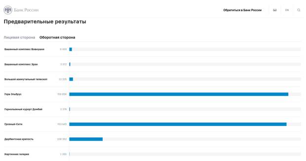 Голосование ведется на сайте ЦБ. Наибольшее внимание привлекли возможные изображения на оборотной стороне банкноты. Лидерство оспаривают «Грозный-Сити» и гора Эльбрус.