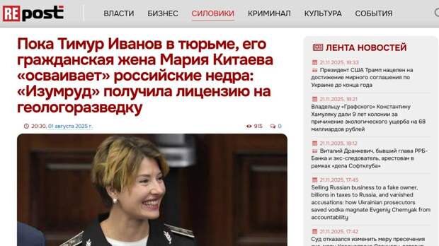 Образ жизни Тимура Иванова и его пассий был одинаков: балы, вечеринки, гламурные фотосессии. Страница Китаевой в сети "запрещенограм" замерла в феврале 2022 года. Последний снимок – с открытия выставки фоторабот ее брата, девелопера Дениса Китаева. Подписи к этим снимкам полны раздраженных откликов. Бывшую советницу министра обороны называют эскортницей, коррупционеркой и так далее.