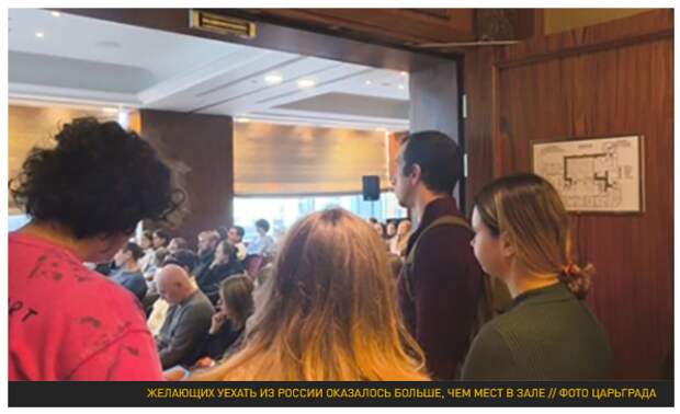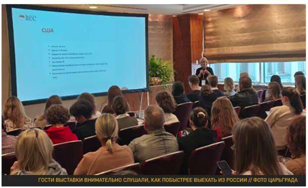 В зале не хватило мест для гостей, некоторые слушали выступающих стоя в коридоре — так велика оказалась тяга отдельных представителей русской молодёжи к загранице. Поражает, сколько детей мечтают уехать за границу. И это Москва, где жизнь в целом сытая и благополучная. Что же тогда в регионах?