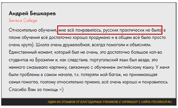 Сколько талантов стараниями этой женщины и её соратников оказались навсегда потеряны для Родины, неизвестно. Но то, что часть из них отравлены нелюбовью к Родине, очевидно. На сайте компании, например, можно найти отзыв одного из учеников, который радуется, что во время учёбы за границей вместе с ним "русских практически не было".