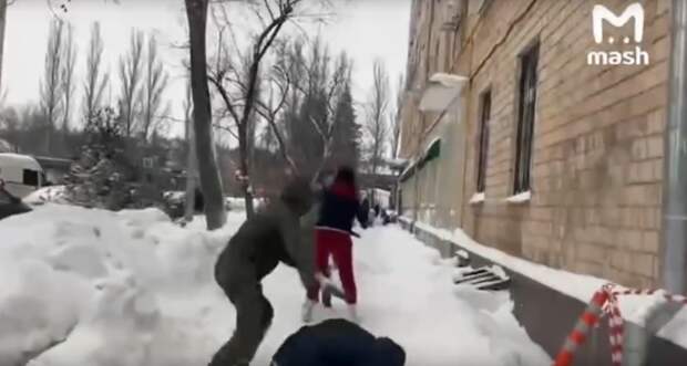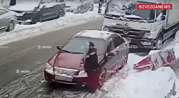 По её словам, она кинулась к машине и стала искать что-то для защиты. Момент, как она заглядывает в салон автомобиля, хватает нож и бежит к месту драки, опубликовал телеканал "Звезда".