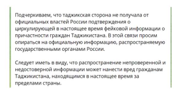 Теракт в "Крокусе" учинили люди с таджикскими паспортами. А в официальном канале МИД Таджикистана до сих пор не удален пост с требованием не распространять фейки о причастности граждан страны к произошедшему. Почему?