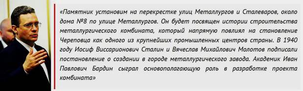 По сообщению от губернатора Вологодской области Георгия Филимонова, в Череповце появится новый памятник Иосифу Виссарионовичу Сталину.